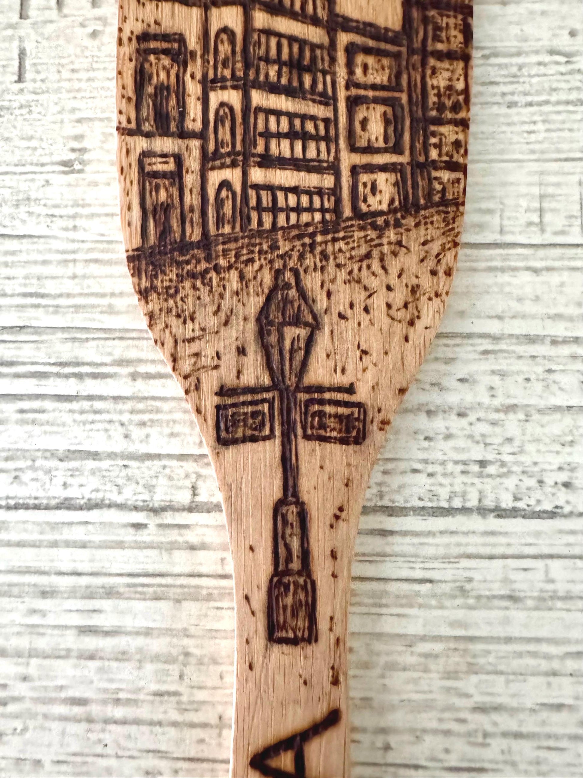 This custom wooden spatula is hand-wood burned with a bourbon street scene. I have 2 style’s available to choose from. This is a 12” bamboo wood spatula and is made to use! Each utensil is hand-wood burned by me, so there will be slight differences in appearance making each utensil unique. I will add personalization to the back of the utensil handle such as a name or short phrase for an additional $3, simply enter the desired name or phrase under personalization option at checkout! If you need any assistance please message me directly!