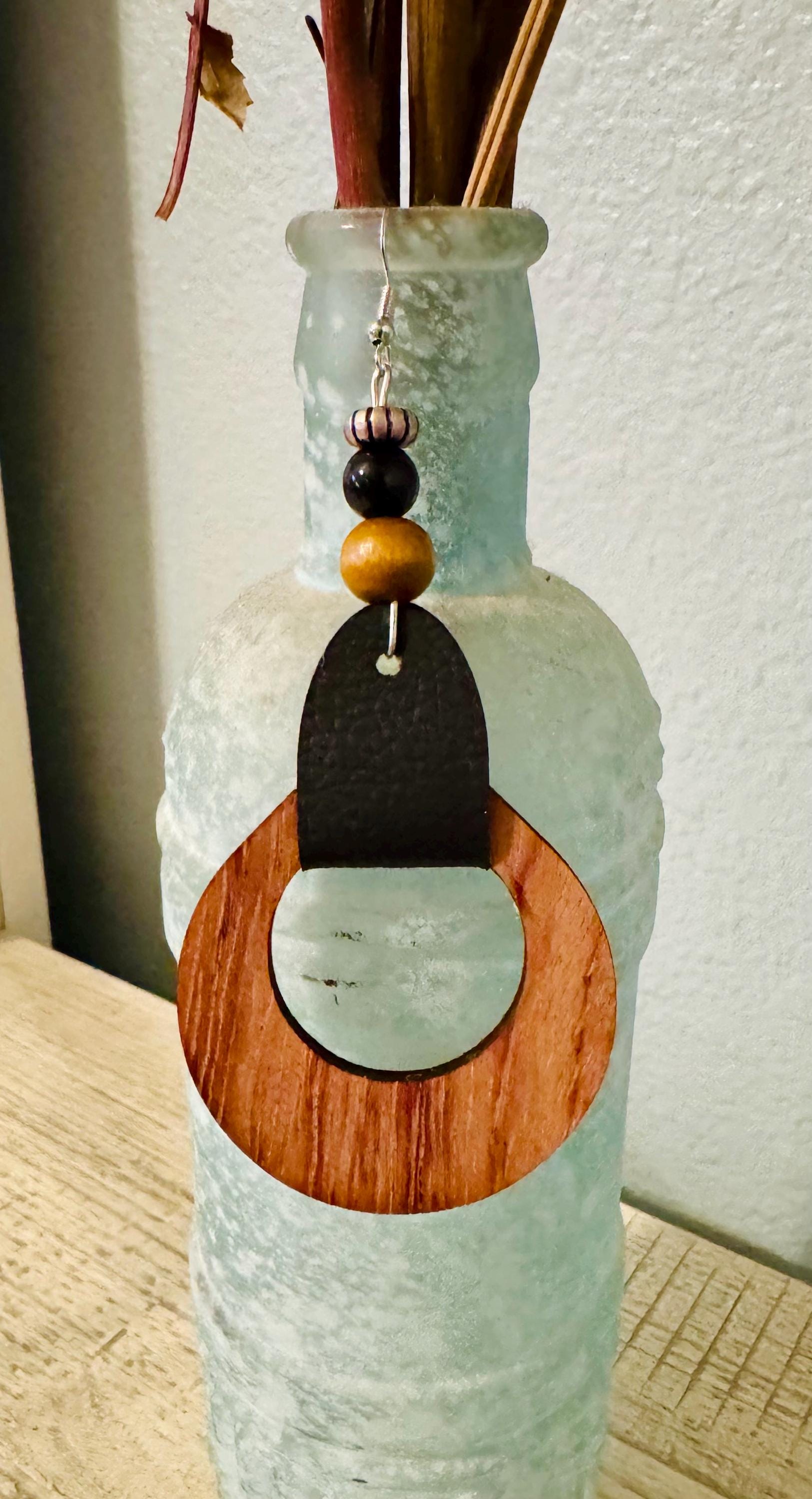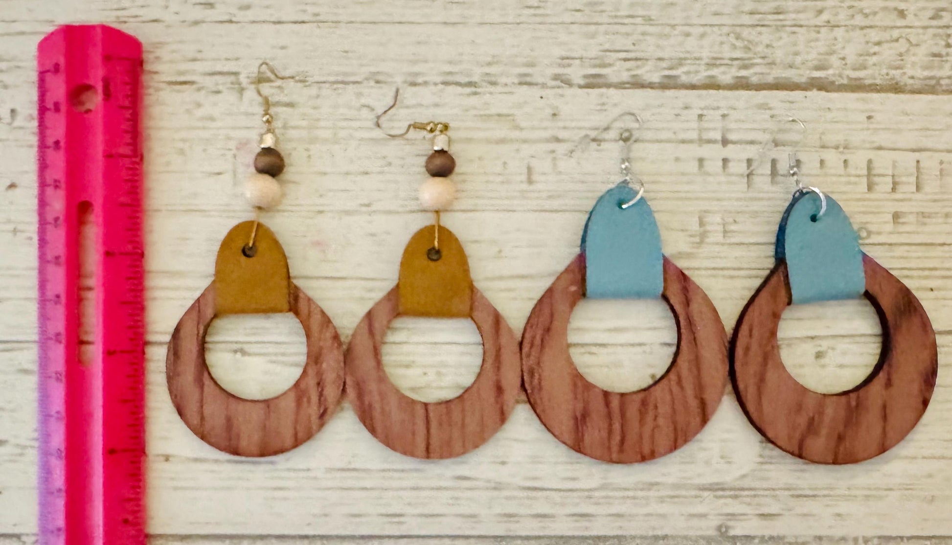 Handmade Wood Hoop Earrings: Boho Leather & Bead Dangle Earrings